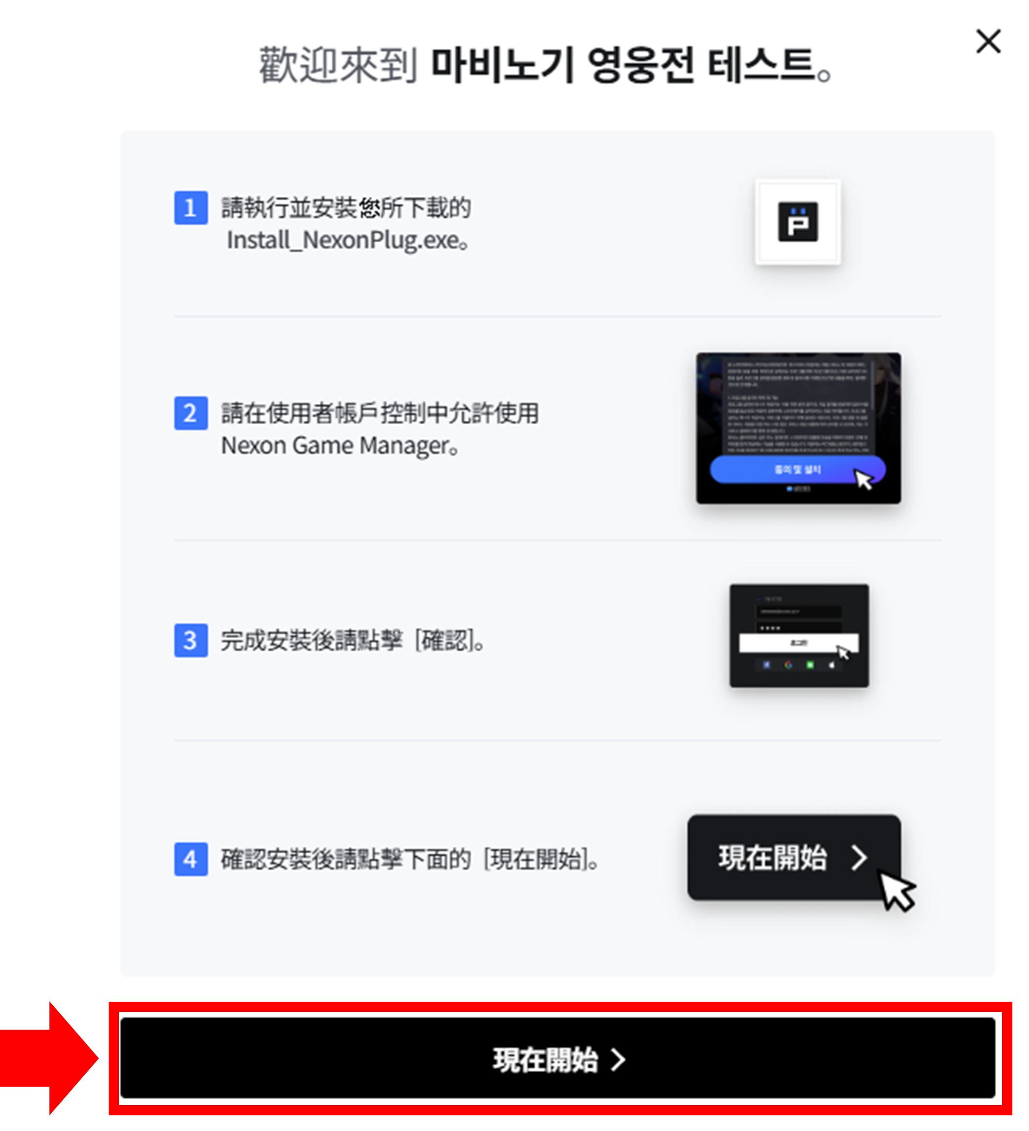 四、點擊畫面上的「現在開始」按鈕並安裝遊戲主程式: