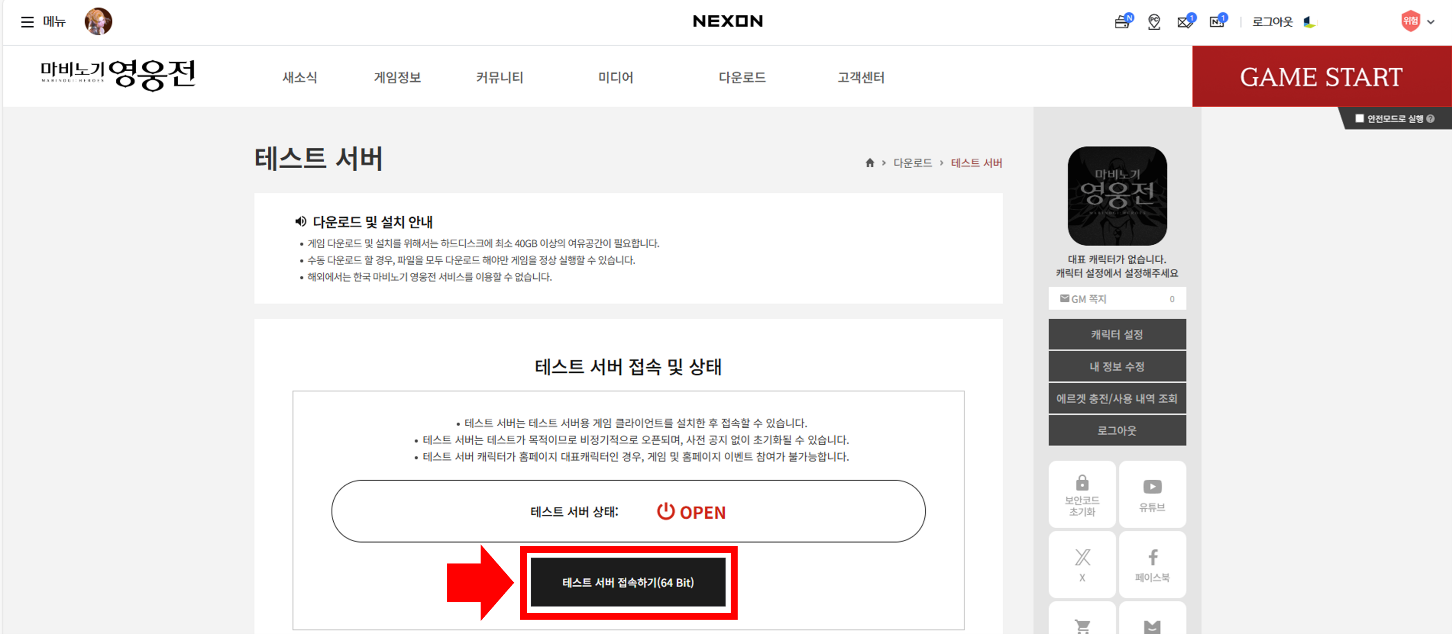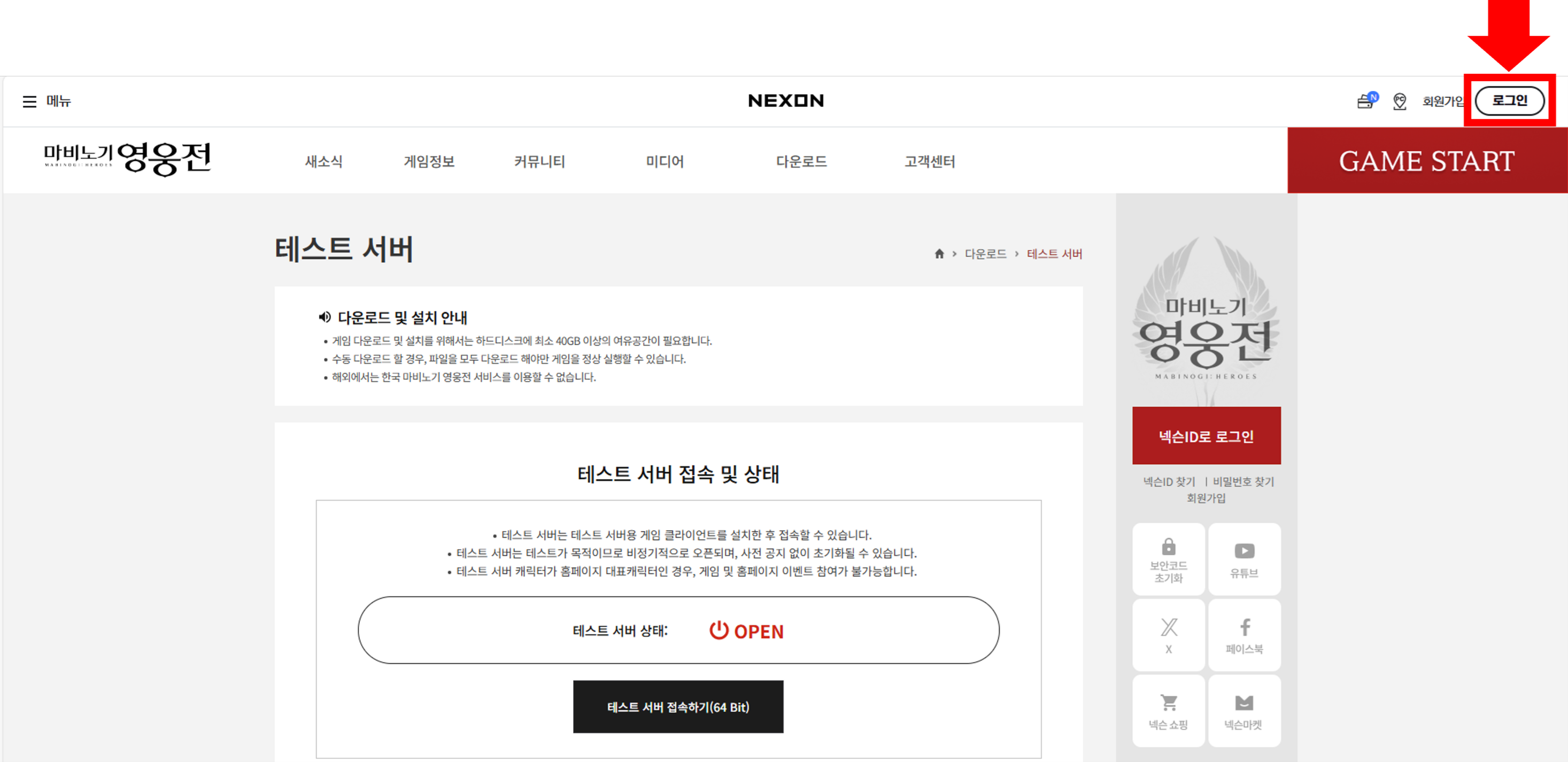 七、點擊測試伺服器網頁上的「連接到測試伺服器(64Bit)」按鈕重新運行遊戲主程式,確認介面語言已更換:
